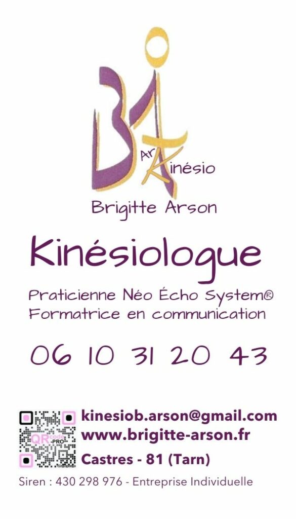 À titre personnel, quelques années auparavant, j’ai été enthousiasmée par les bienfaits de la kinésiologie. Captivée par son processus, je me suis formée durant 2 ans à l’IEK (Institut Européen de Kinésiologie) à Toulouse (31). Certification ici